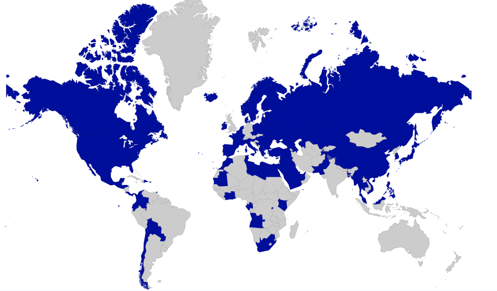 2020 yılı itibarıyla dünyada 192 ülke var. Bu ülkelerin nüfusları ve büyüklükleri itibariyle, en yoğun nüfusa sahip ilk 80 ülkede Eurol olarak faaliyet gösteriyoruz.